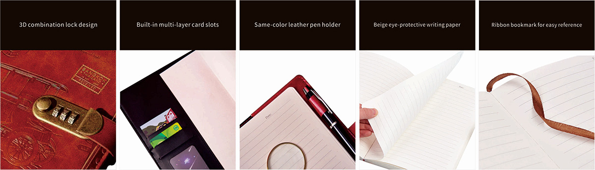 রেকর্ডিং অনুপ্রেরণার সময়োপযোগীতা বিবেচনা করে, এই লকড ডায়েরিটি বিশেষভাবে কলম সন্নিবেশ করার কার্যকারিতা সহ ডিজাইন করা হয়েছে।