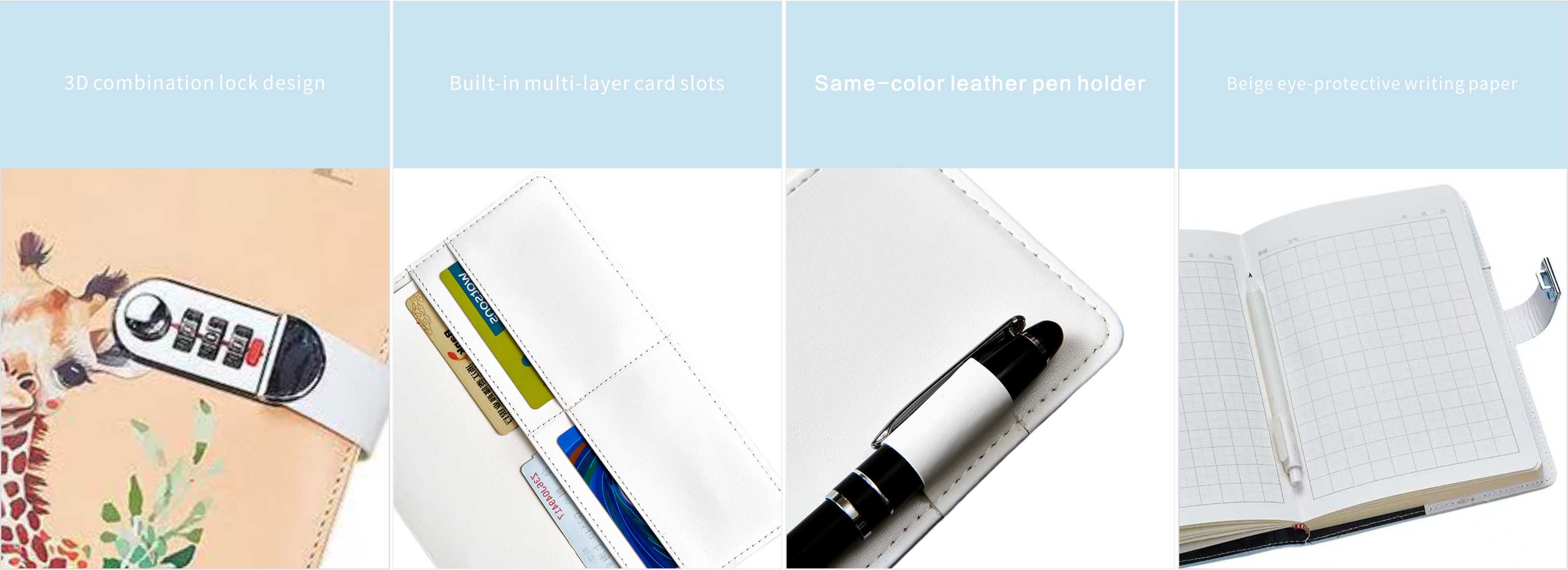 এই ডায়েরিটি একটি শক্ত ধাতব সংমিশ্রণ লক দিয়ে সজ্জিত, যা কোনও সাধারণ লক নয়! এর ত্রি-অঙ্কের পাসওয়ার্ড সেটিংটি সহজ এবং মনে রাখা সহজ, তবে এটি অন্যকে কার্যকরভাবে এটি সন্ধান করতে বাধা দিতে পারে, বাচ্চাদের তাদের সামান্য গোপনীয়তার মূল্যবান করার জন্য একটি নিরাপদ স্থান সরবরাহ করে।